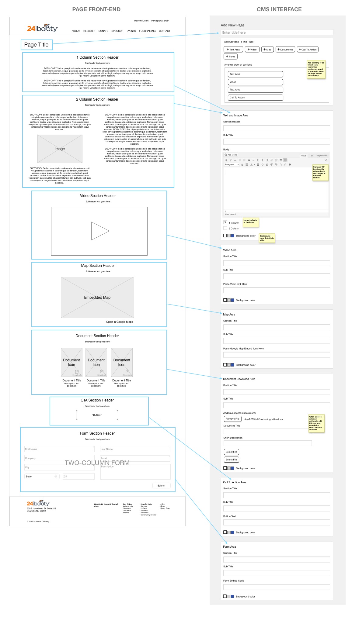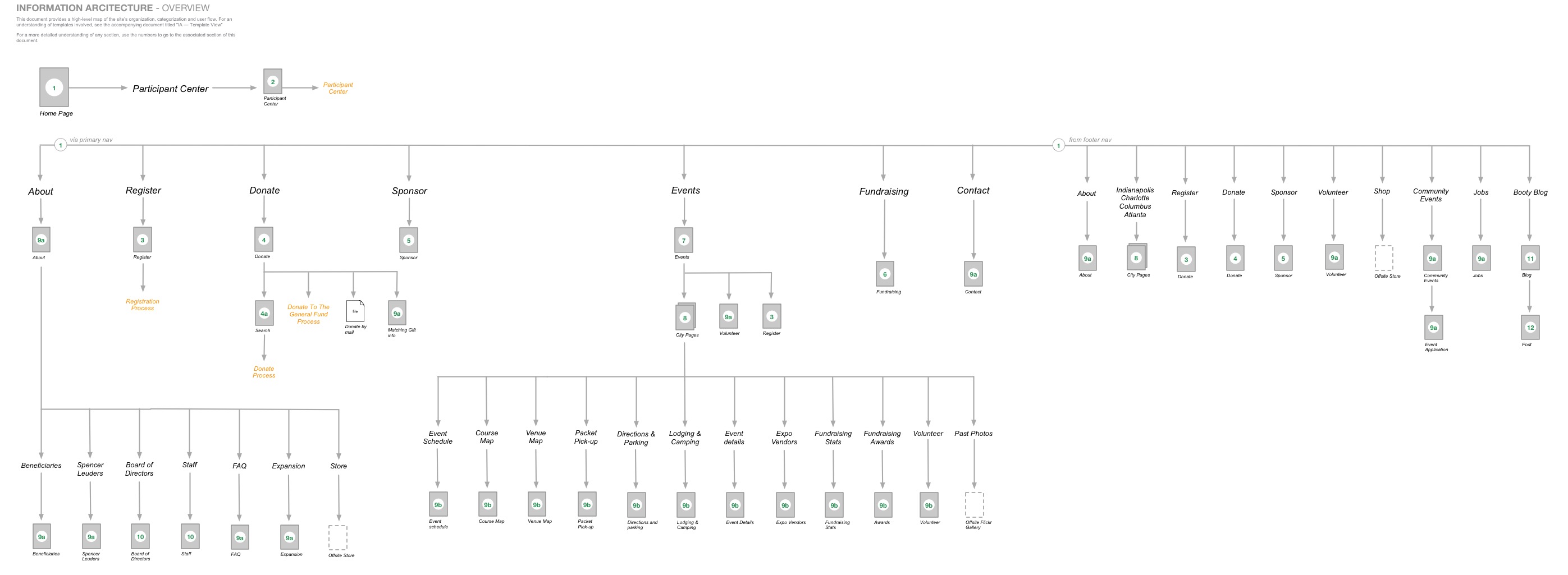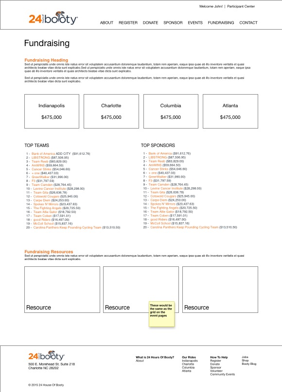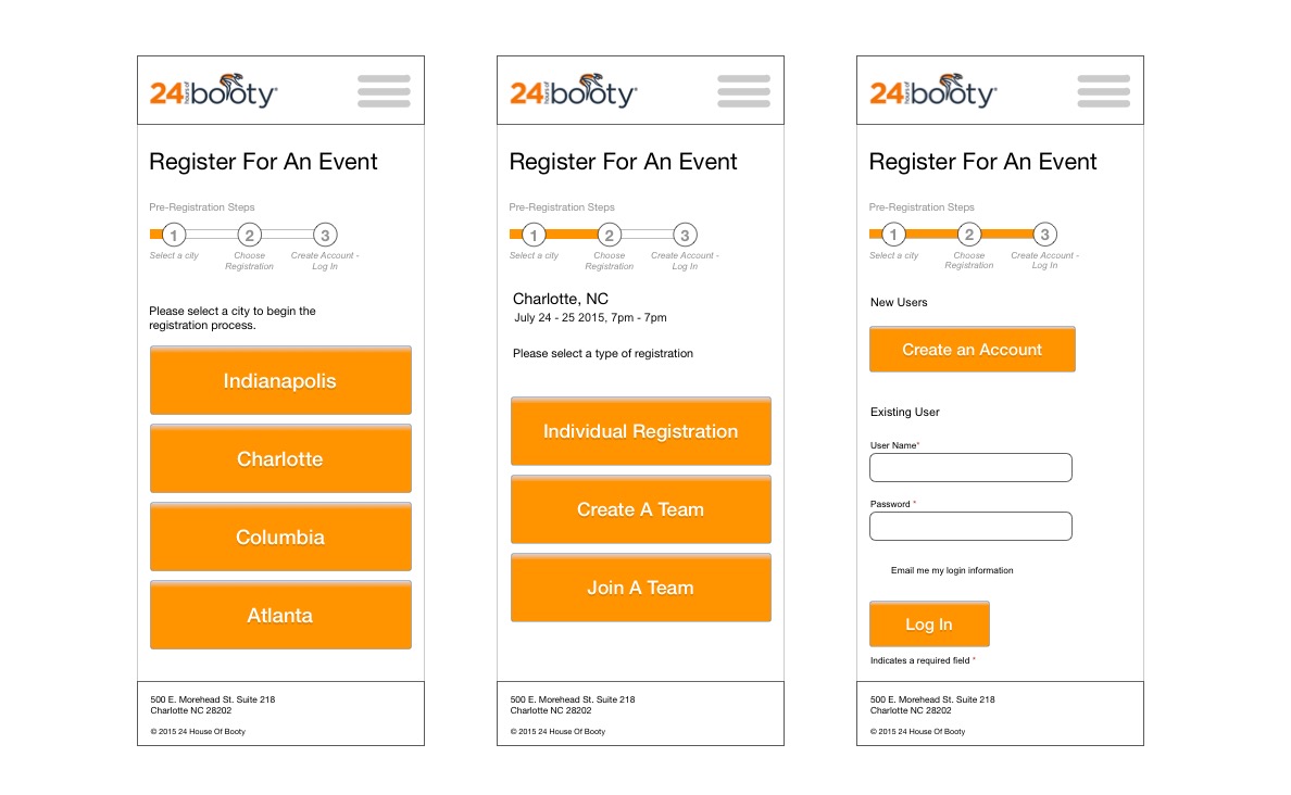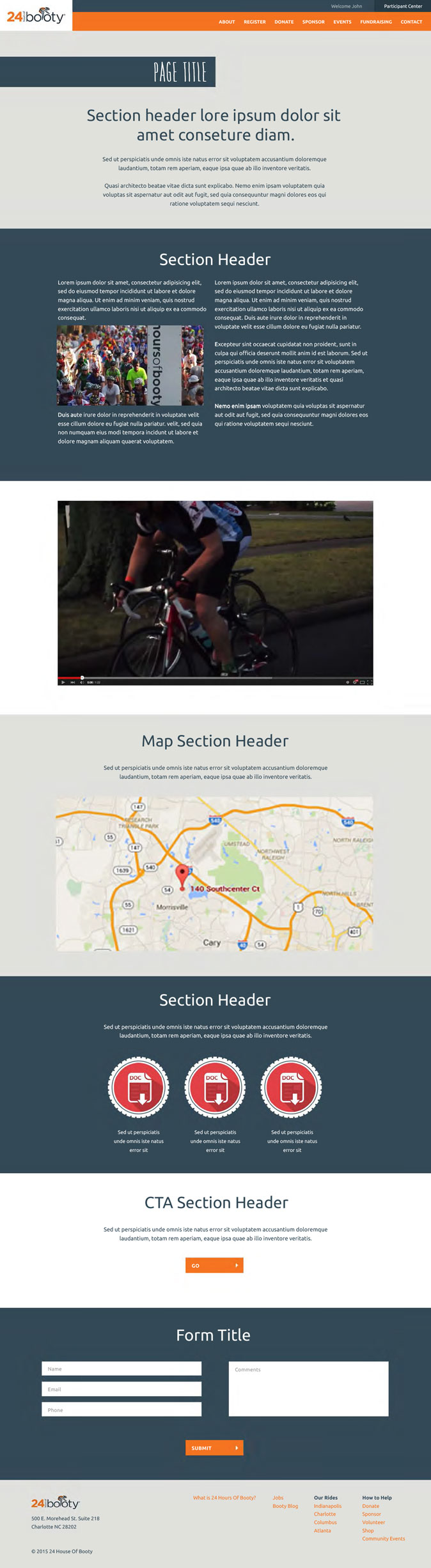 Every year, in multiple cities in the US, 24 Hours Of Booty (now 24 Foundation) raises millions to support cancer survivorship programs. But the site had become overgrown with content, and therefore frustrating to use. I was asked to fully redesign the entire experience.