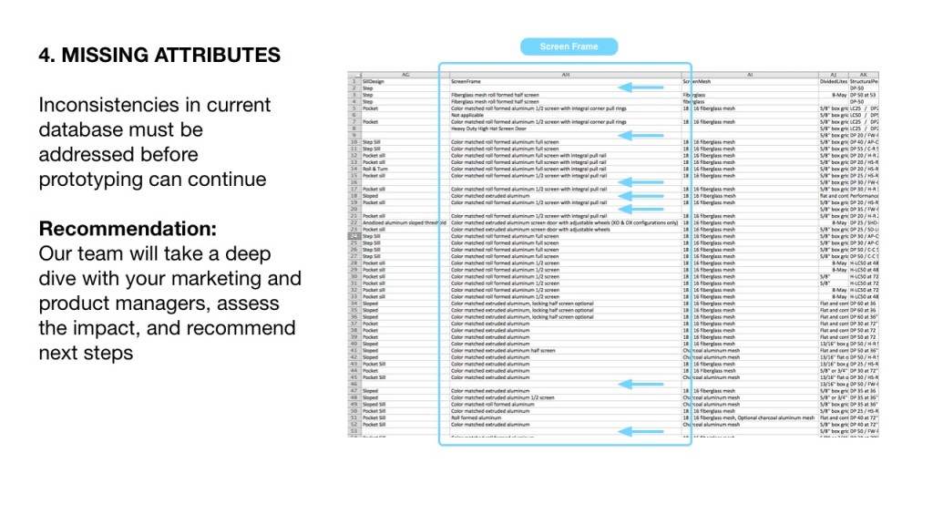 Spoiler alert: The data needed work. It was an inconsistent jumble of copy-and-pasted information compiled from multiple manufacturers with conflicting nomenclature for dozens of attributes.