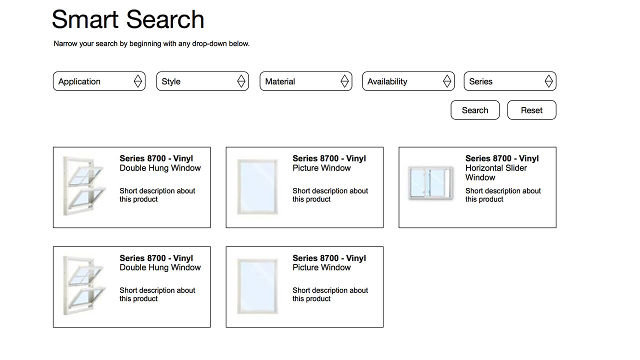 But not just any old search feature. This search feature had to account for multiple manufactures in different parts of the country with geo-specific offerings based on regional building codes and long-established distributor networks.